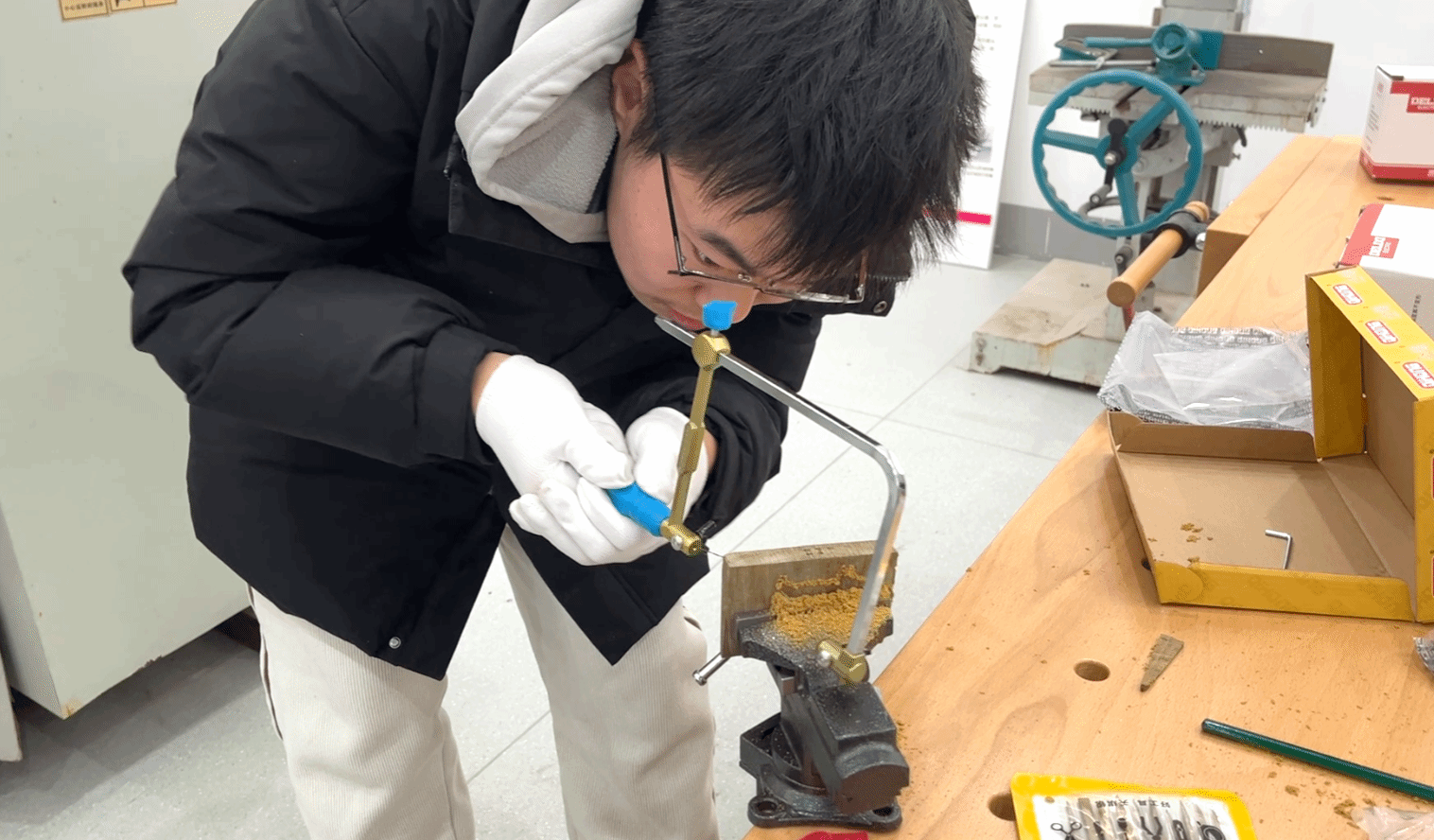 “我们选择‘手工木梳’作为起点,因其工序完整、内涵深厚,”课程负责人鲍雄老师阐释道,“从识木选料、设计画线,到锯锉成型、精磨抛光,学生在十余道工序的完整周期中,亲历从‘料’到‘器’的创造性转化。这不仅是学习使用凿子与砂纸,更是学习专注、耐心与对材料的敬畏。”