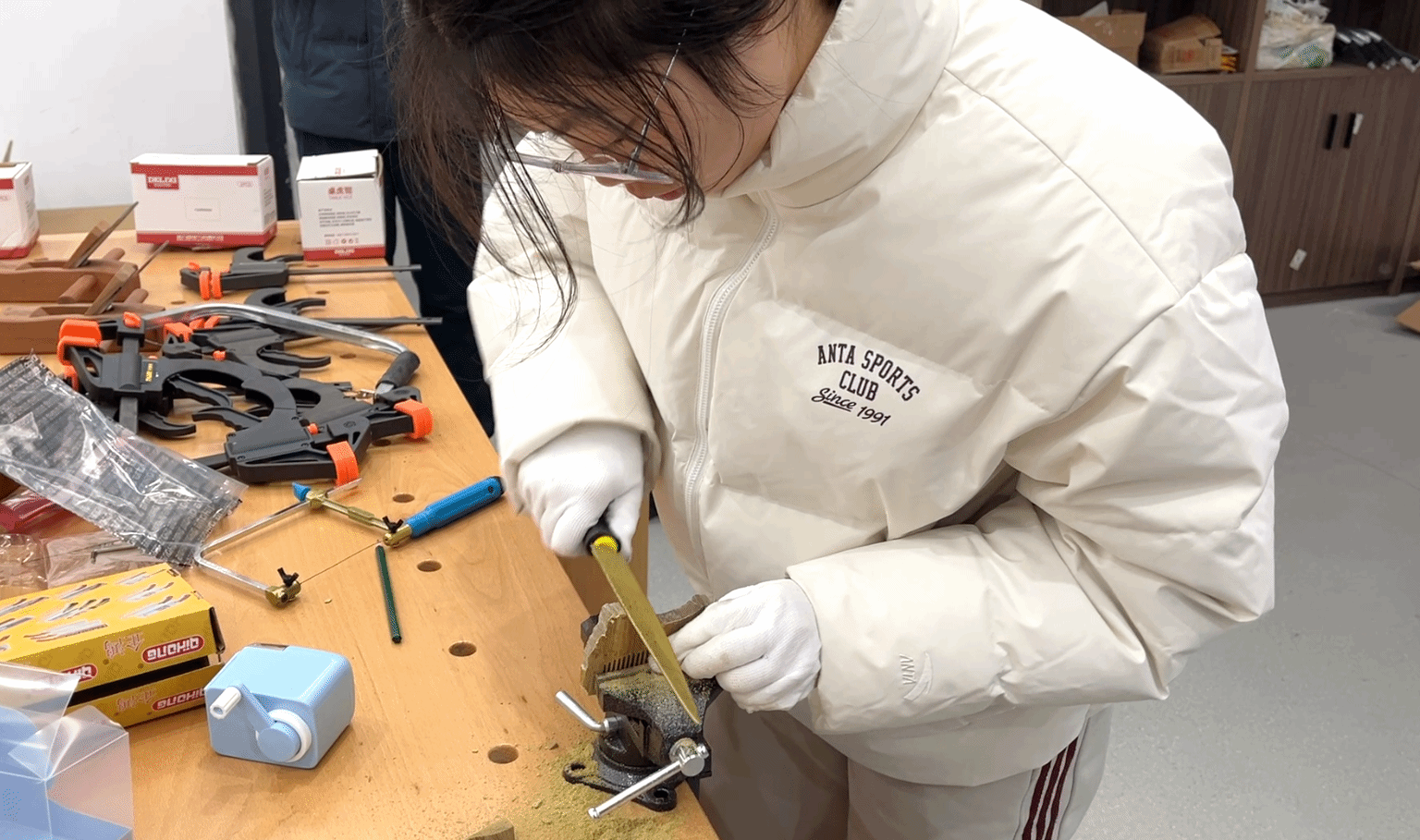 走进绳墨木工坊,空气中浸润着木材的天然芬芳。在这里,劳动教育的首课,始于一块质朴的木料与一套传统的手工工具。